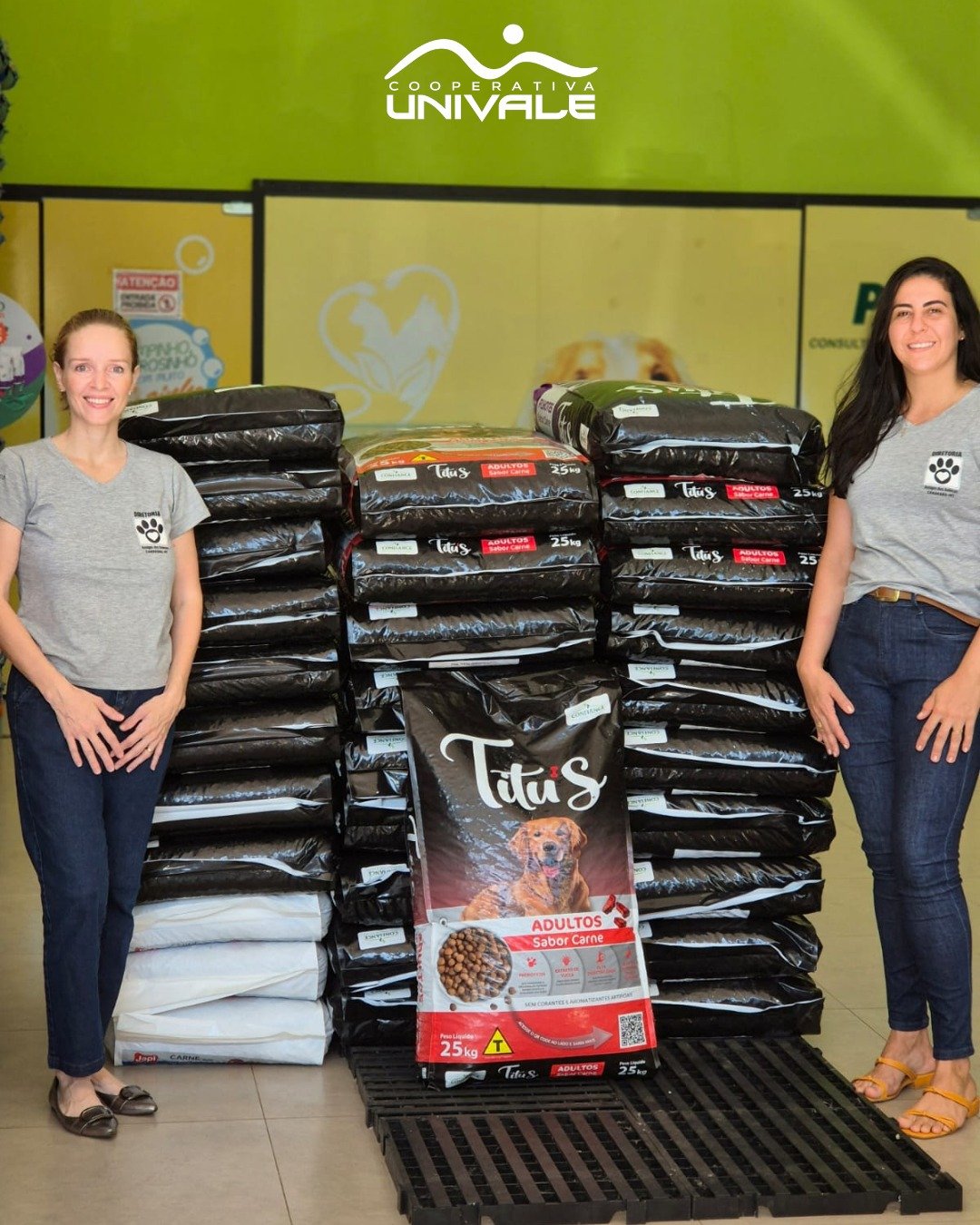 A Cooperativa Univale, com sede em Querência (MT), realizou a doação de 31 sacos de ração, cada um com 25 quilos, totalizando 775 kg de alimento. A entrega foi destinada à Associação Amigos dos Animais de Canarana – AAAC, entidade que atua no resgate e acolhimento de animais no município de Canarana.