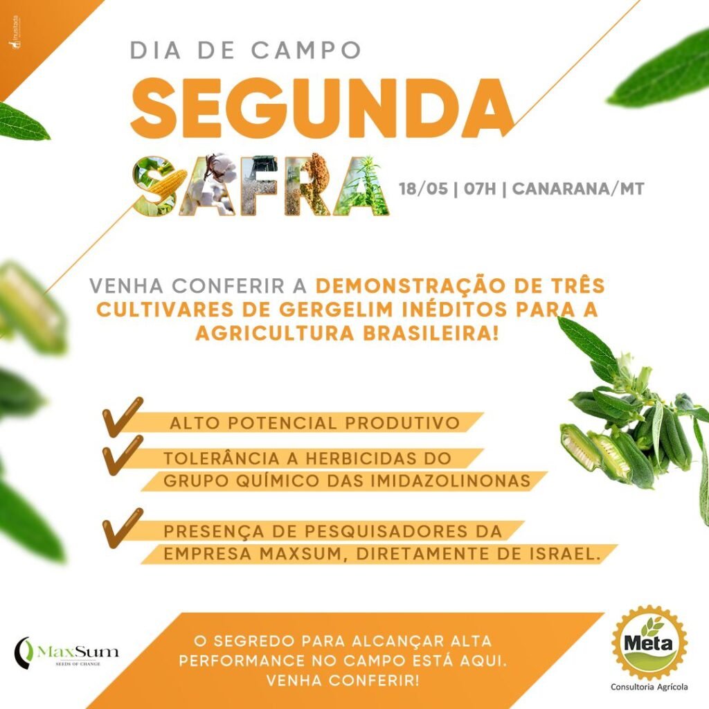 Além disso, o Dia de Campo contará com a presença de renomados pesquisadores da empresa Maxsum, diretamente de Israel. Esses especialistas irão compartilhar seu conhecimento sobre o cultivo do gergelim e discutir estratégias para maximizar a rentabilidade das fazendas.