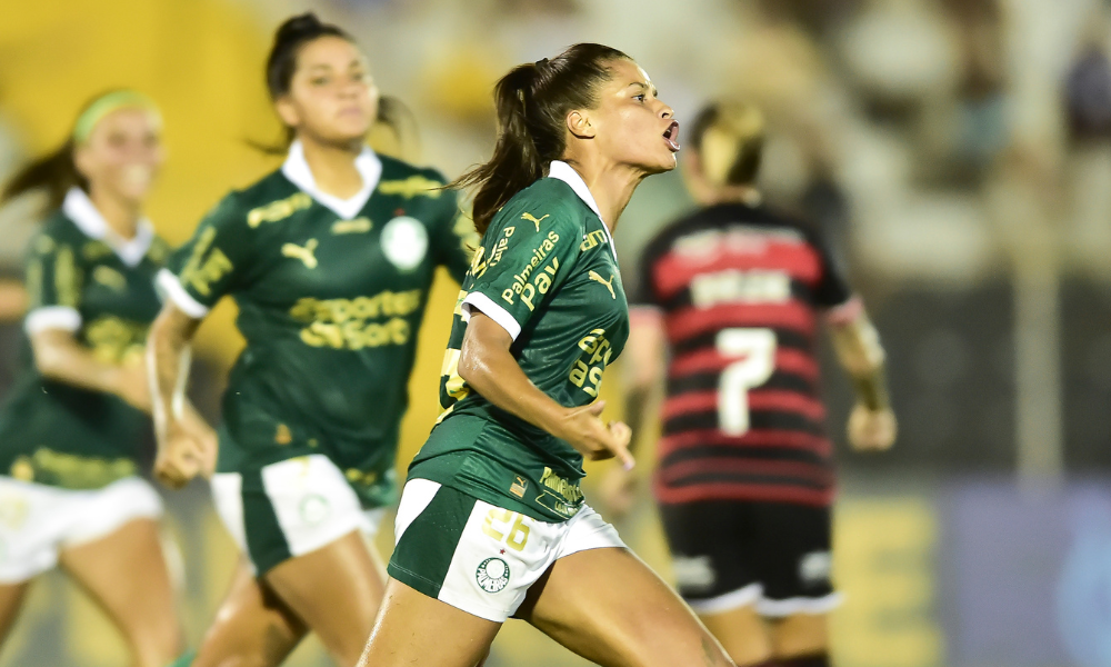 Compartilhe o Facebook Twitter LinkedIn Pinterest E-mail Em jogo movimentado, Palmeiras ganha do Flamengo por 3 a 2 na primeira rodada do Brasileirão Feminino