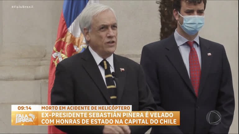 O ex-presidente pilotava um helicóptero e ia visitar um amigo Fala Brasil 08/02/2024 – 10h25 (Atualizado em 08/02/2024 – 12h35) Para ver este vídeo, ative o JavaScript e considere atualizar para um navegador da Web que suporta vídeo HTML5 O corpo do ex-presidente do Chile, Sebastian Piñera, é velado com honras de Estado. Nesta quinta (8), ele receberá homenagens e discursos e o caixão ficará liberado para visitação pública. Na sexta-feira, o político será enterrado em cerimônia privada para familiares e amigos. Autoridades chilenas confirmaram que a causa da morte dele foi afogamento, depois da aeronave cair em um lago. Últimas