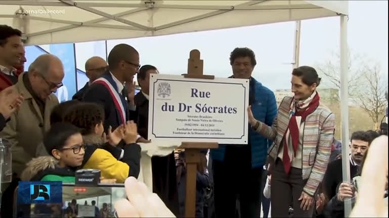 Foi inaugurada hoje (30), na França, uma rua em homenagem ao ex-craque da seleção brasileira, Sócrates. A ‘rua do Doutor Sócrates’, em português, dá nome a uma das vias da Vila Olímpica. O local fica na cidade de Saint-Ouen, a poucos quilômetros do centro de Paris, e receberá a delegação brasileira nas Olimpíadas deste ano na capital francesa. O evento de inauguração contou com a presença do irmão Raí, dos filhos do ex-jogador do Corinthians, e do presidente da Agência Brasileira de Promoção Internacional do Turismo.