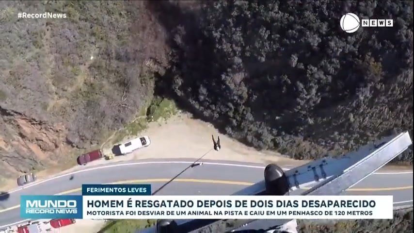 Um homem foi resgatado, na última terça-feira (27), após ficar dois dias desaparecido em um penhasco na Califórnia, nos Estados Unidos. O motorista foi desviar de um animal na pista e escorregou ladeira abaixo, a uma altura de 120 metros. Os colegas de trabalho deram falta dele e avisaram a polícia. Apesar da cena trágica, os bombeiros, que o resgataram com um helicóptero, disseram que o homem teve poucos ferimentos e não corre risco de morrer.
