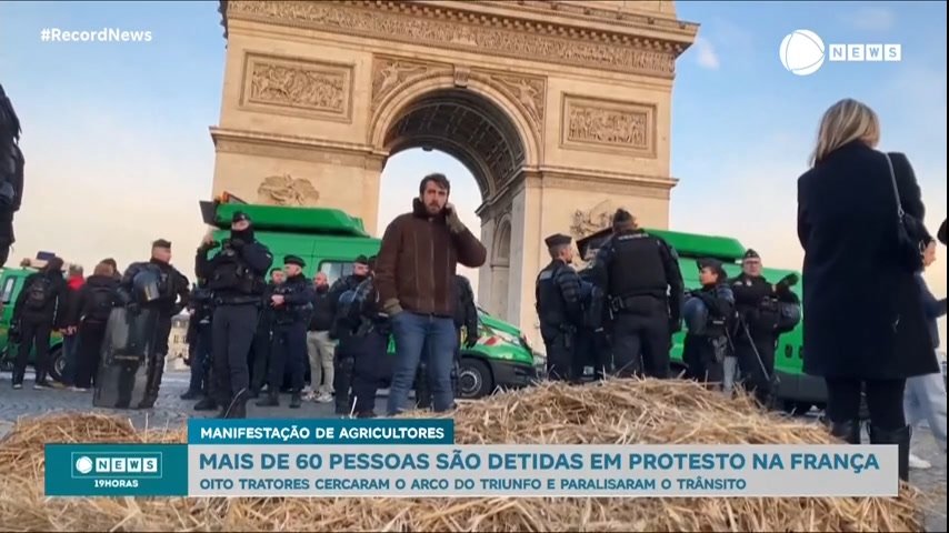 Ao menos 66 integrantes do Sindicato de Coordenação Rural da França, que promoveu mais uma manifestação pela valorização da agricultura no país, foram detidos na manhã desta sexta-feira (1). Oito tratores cercaram o Arco do Triunfo e paralisaram as 12 avenidas que cruzam o monumento. Assim como tem ocorrido em diversos pontos da Europa, em decorrência de um marco ambiental regulatório que contribui para os baixos rendimentos e incentiva a compra de produtos importados, os protestos têm sido intensificados pelos agricultores.