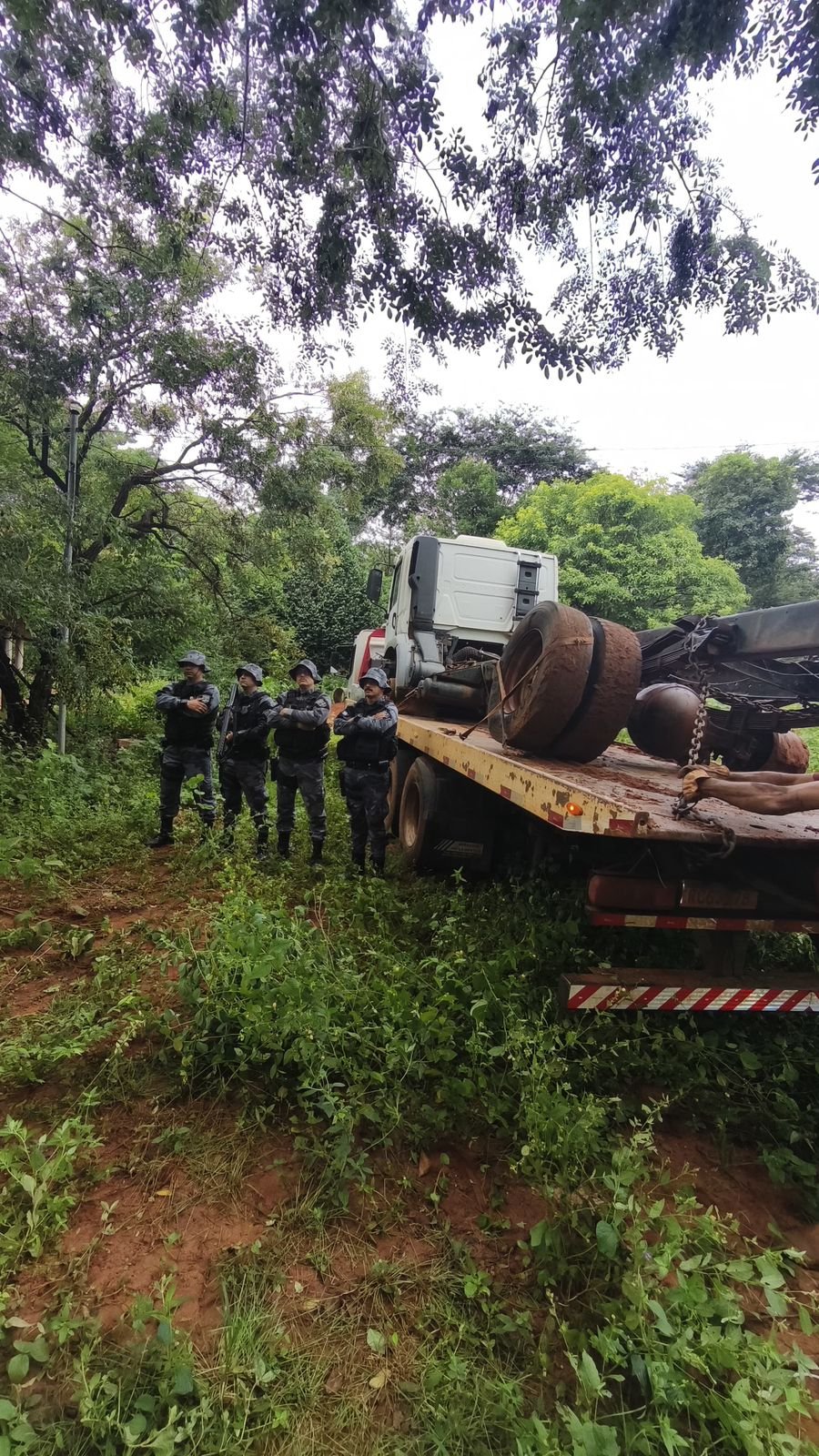 A ocorrência teve início durante patrulhamento rural em Bom Jesus do Araguaia, quando os policiais receberam denúncia anônima informando que um caminhão branco estaria escondido em uma chácara e que, possivelmente, partes do veículo estariam sendo retiradas.