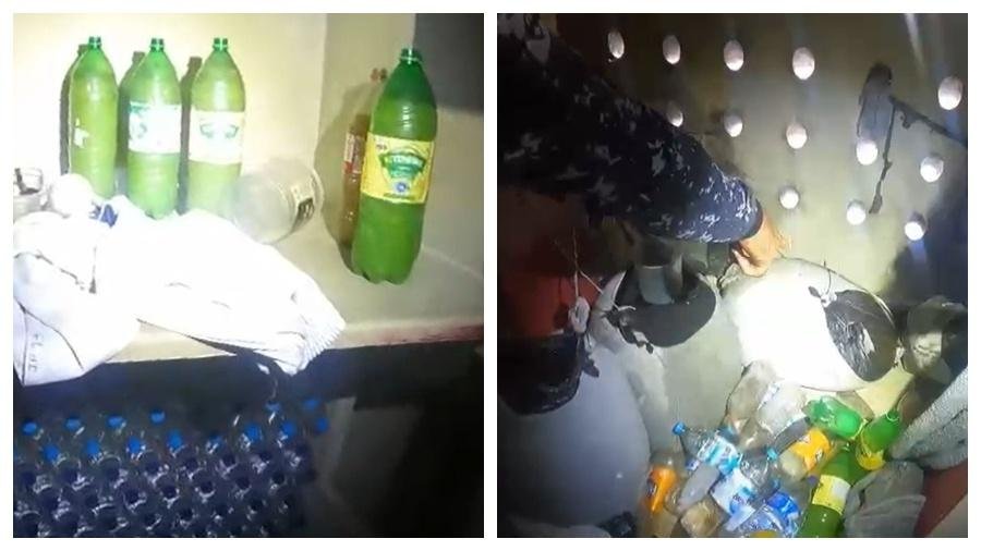 Vídeo da operação mostra inúmeras garrafas que seriam usadas durante a fabricação do líquido alcoólico. Os suspeitos fabricavam o líquido com água, restos de comida e pão. Com a finalização da mistura, ela era colocadas em sacos para a fermentação.
