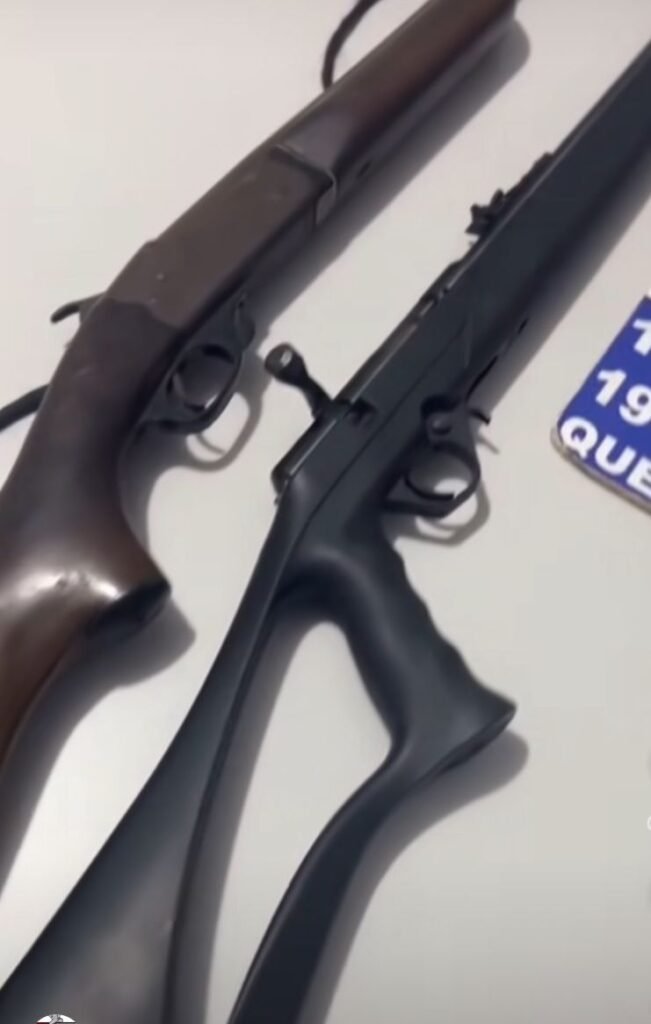 Os policiais prontamente se dirigiram ao local e realizaram uma busca na área, resultando na descoberta de duas armas de fogo. Foram encontrados um rifle calibre .22 com um carregador contendo 10 munições intactas, além de uma espingarda calibre .36 sem munição.