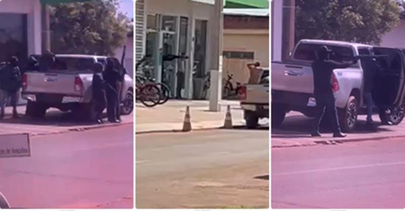 De acordo com informações os assaltantes invadiram o banco, roubaram uma grande quantia em dinheiro e, na fuga, levaram duas pessoas como reféns. A quadrilha utilizou uma caminhonete Toyota Hilux para escapar.