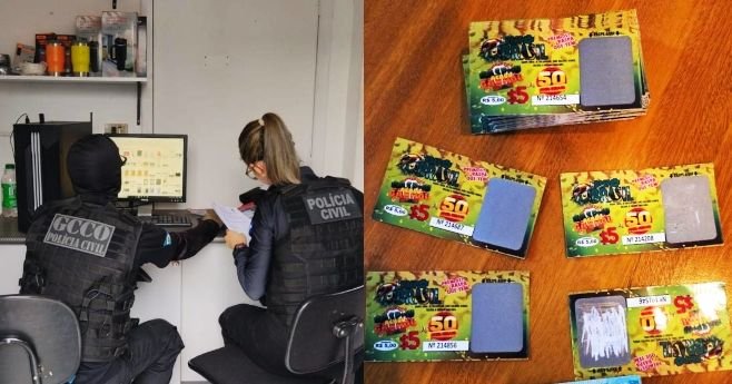 Também foi autorizada a apreensão e o descarte do material de raspadinhas, que somava centenas de bilhetes e banners de propaganda apreendidos durante as diligências.