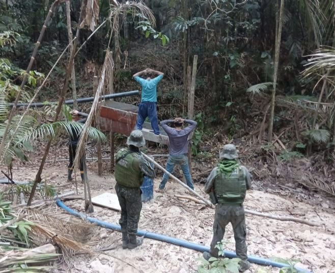 A atuação das forças policiais nesse local também rendeu uma multa de R$ 258 mil, apreensão de uma arma de fogo, dois motores e 24 metros de mangueira usada para canalizar água para lavagem do matérias extraídos na escavação do solo.