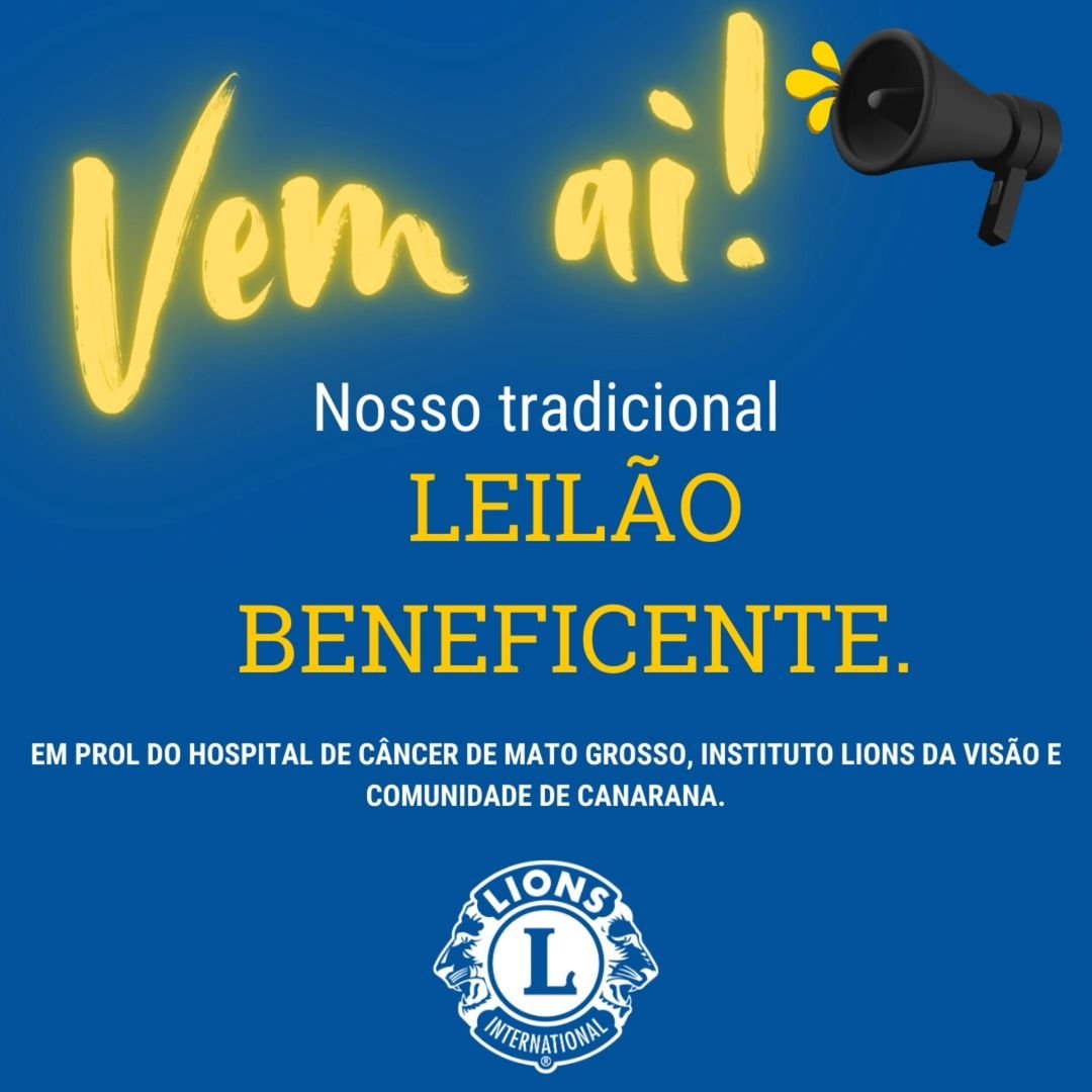 O Lions Club de Canarana prepara mais uma edição do esperado Leilão Beneficente, que será realizado no dia 1º de dezembro. O evento promete movimentar a comunidade, reunindo solidariedade e boa gastronomia em uma noite especial. Todo o valor arrecadado será destinado ao Hospital do Câncer de Mato Grosso, ao Instituto Lions da Visão e a outros projetos voltados à comunidade de Canarana.